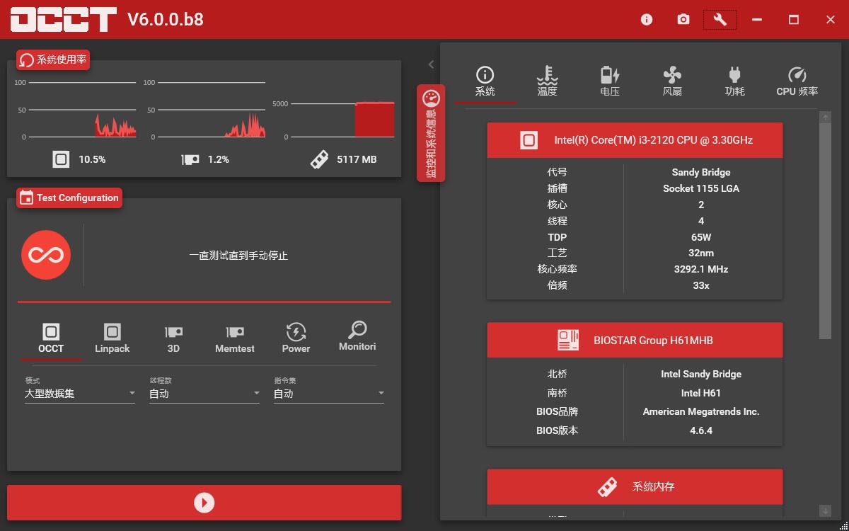 OCCT主要用来检查系统电源稳定性以及在满负荷下CPU和主板芯片的温度,以测试电脑是否能够超频,我们由此也可以看到高品质的电源对超频是多么重要!