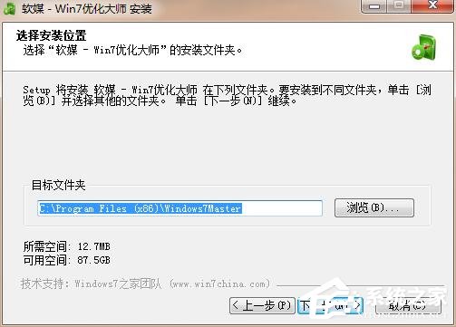 2、默认选择软件安装目录“C:Program Files (x86)Windows7Master”;