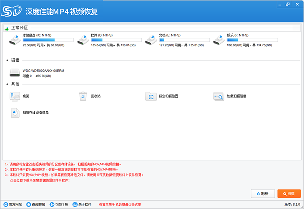 深度佳能MP4视频恢复软件,使用碎片重组技术,完美恢复GoPro运动相机拍摄的MP4格式视频,恢复出来的文件可以正常播放和二次编辑。可以恢复误删除、误格式化、病毒破坏等各种原因导致的深度佳能MP4视频恢复软件视频文件丢失。